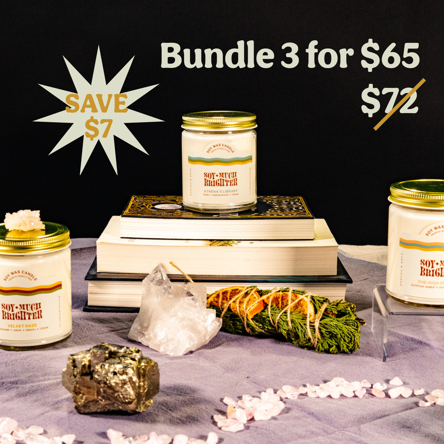 Not sure what scent to try first? Try a bundle! At a discounted rate, too ;) The So Moody 8oz bundle features moody selections from our soy candle core collection.